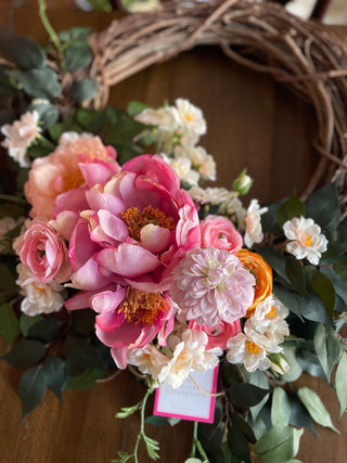 Valentina 18" Grapevine Faux Pink Peonies Eucalyptus Front Door Wreaths