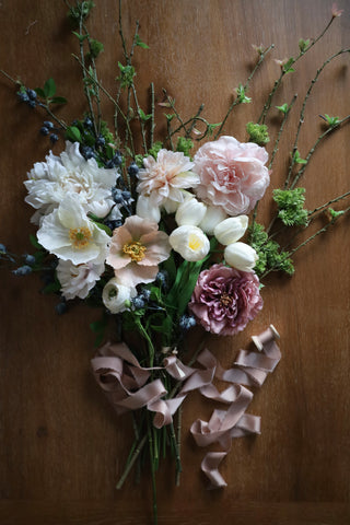 Autumn dahlias, golden mums, and burnished ranunculus circle a full wreath of Italian ruscus, making Fall in Love the kind of classic you’ll reach for every season. Timeless and warmly inviting—this one is fall at its finest.